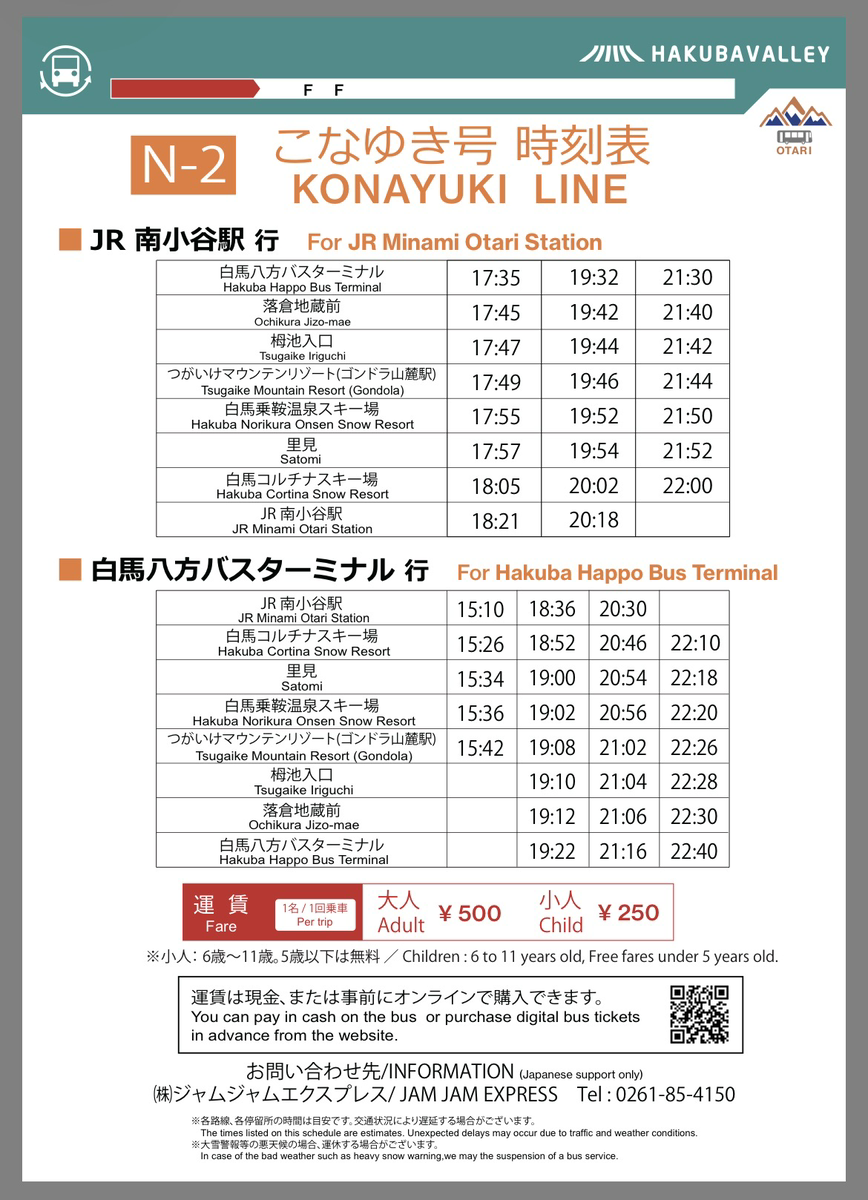 | 17:00 | Bus (To Itoigawa) | Daily |