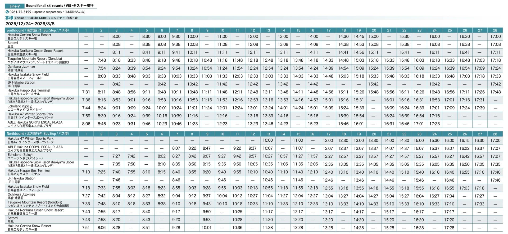 Line-V(JR Hakuba Station ⇔ To Tsugaike Mountain Resort)