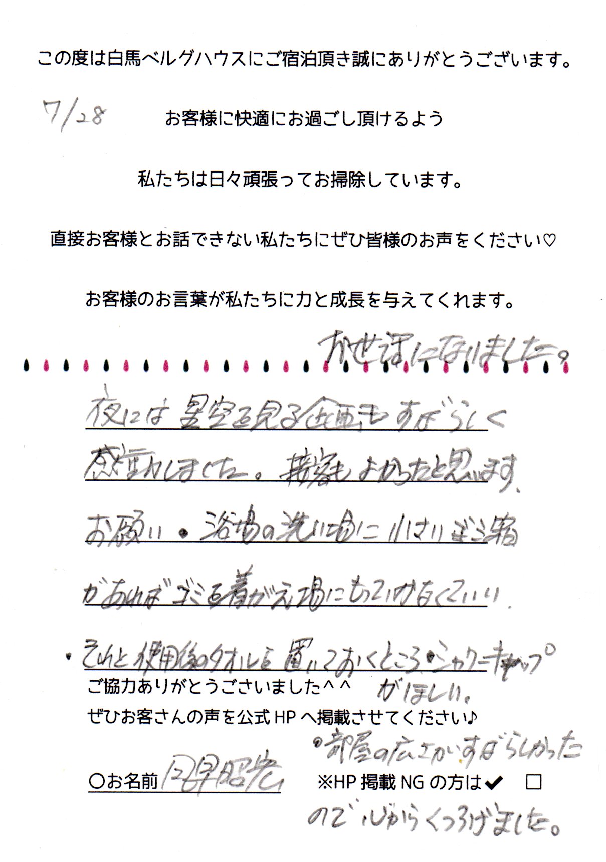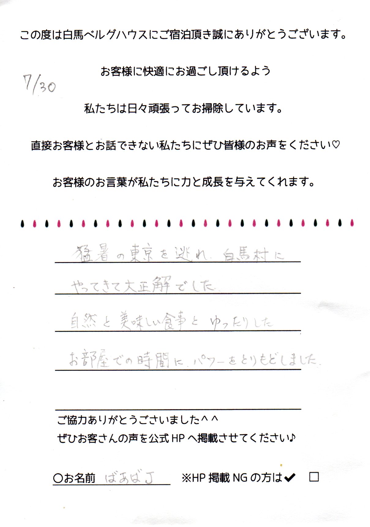 2024年7月 ご宿泊