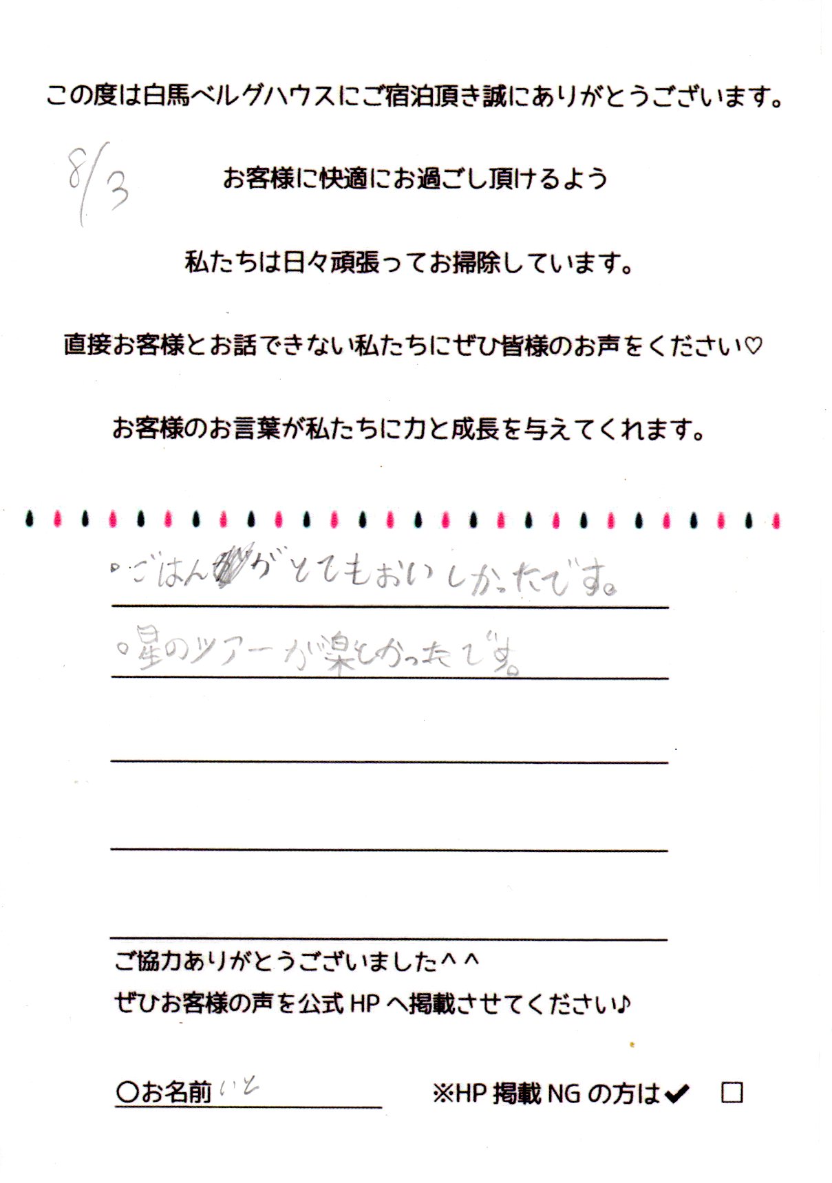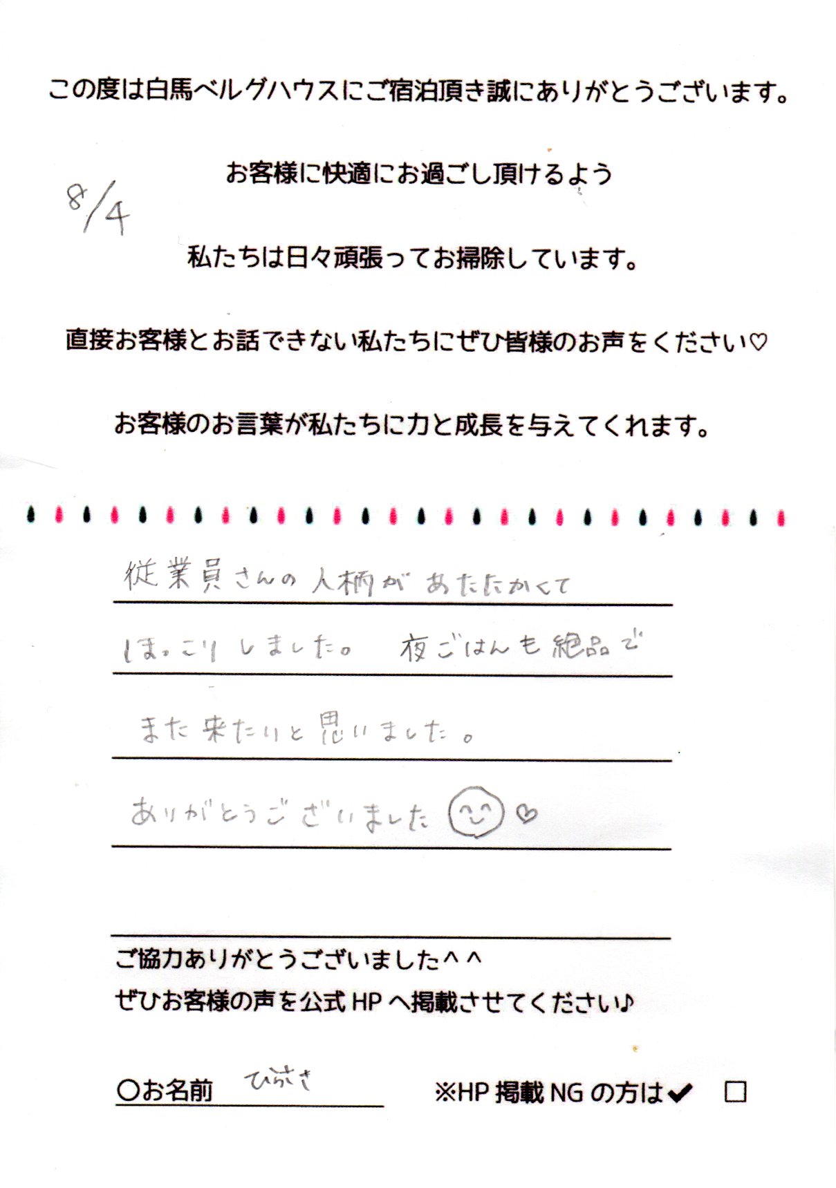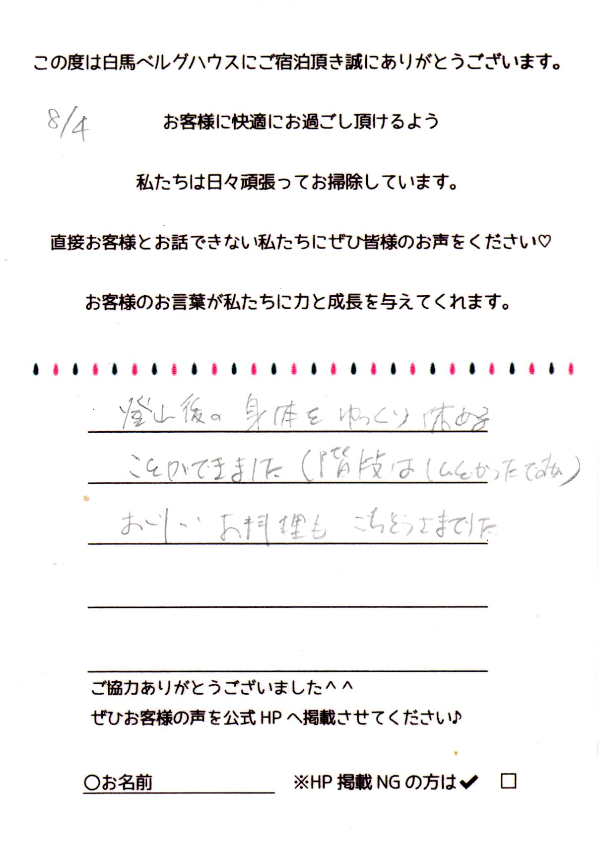 2024年8月 ご宿泊