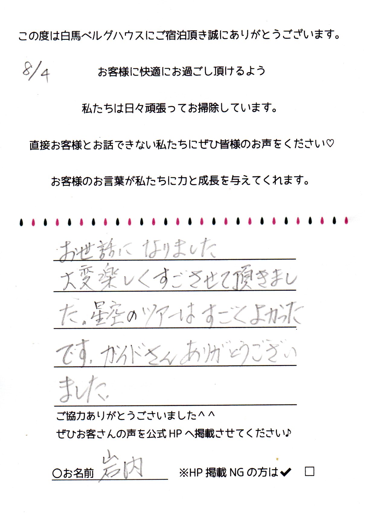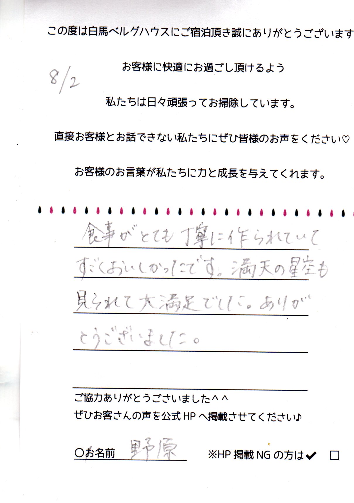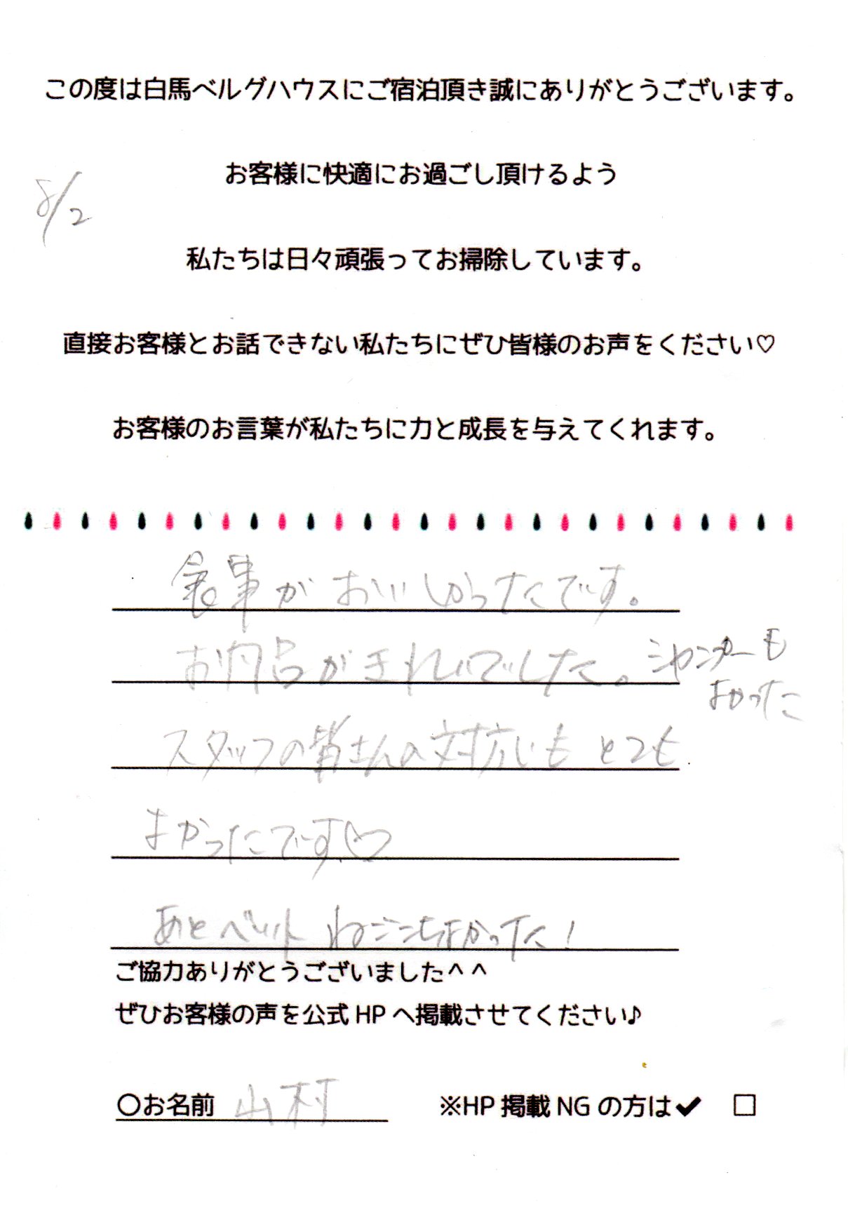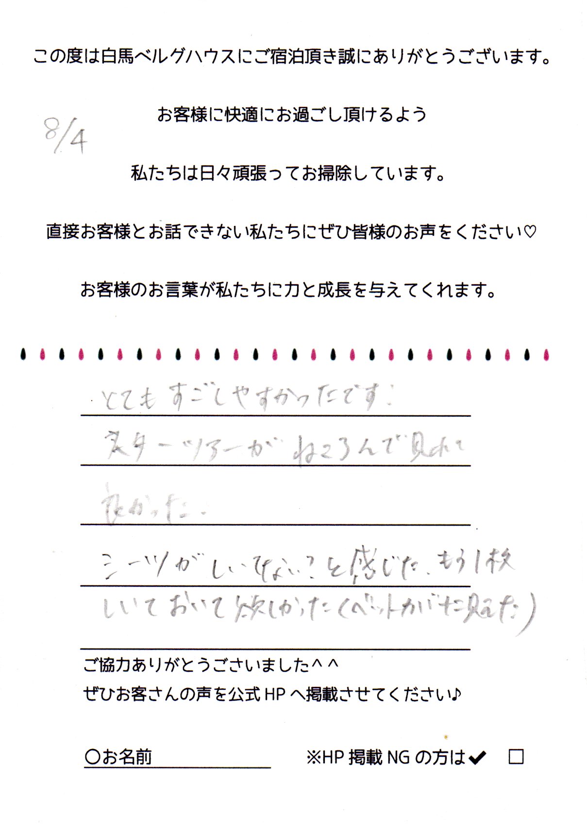 2024年8月 ご宿泊