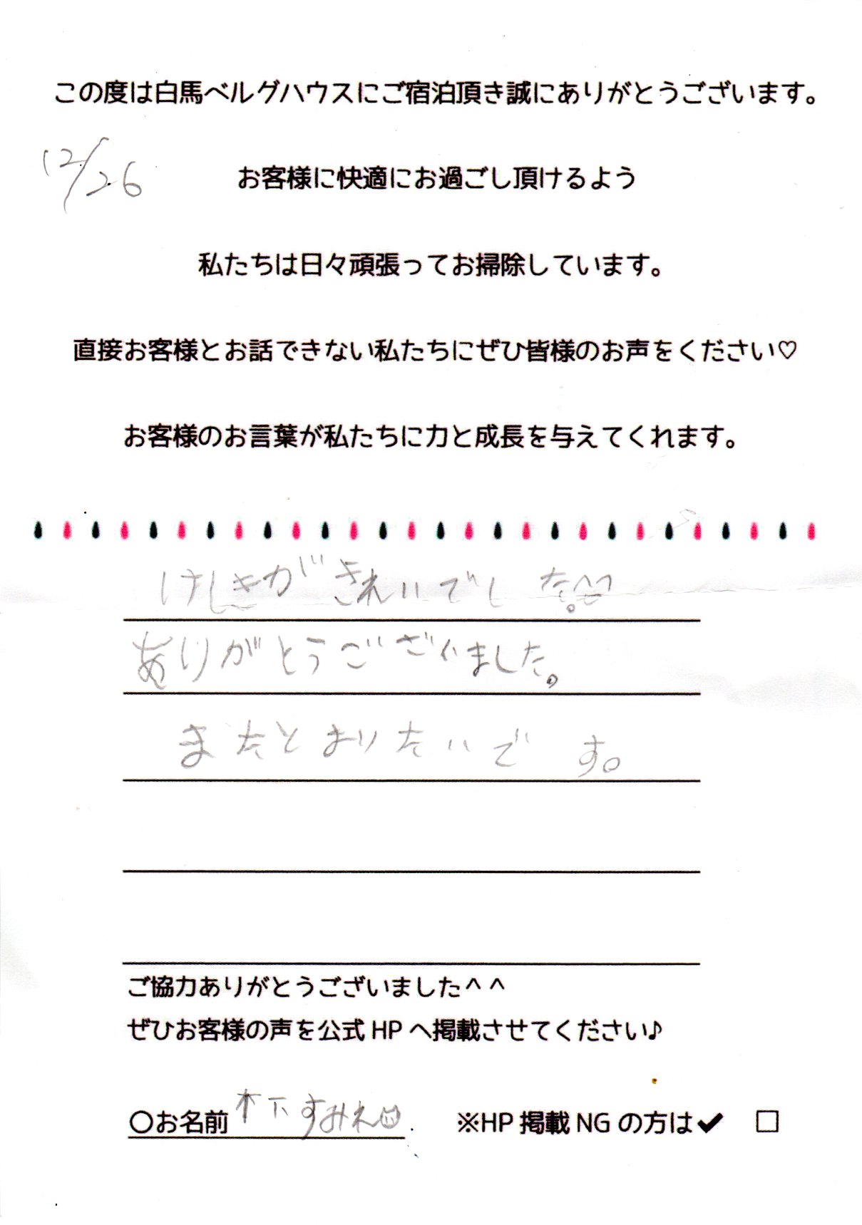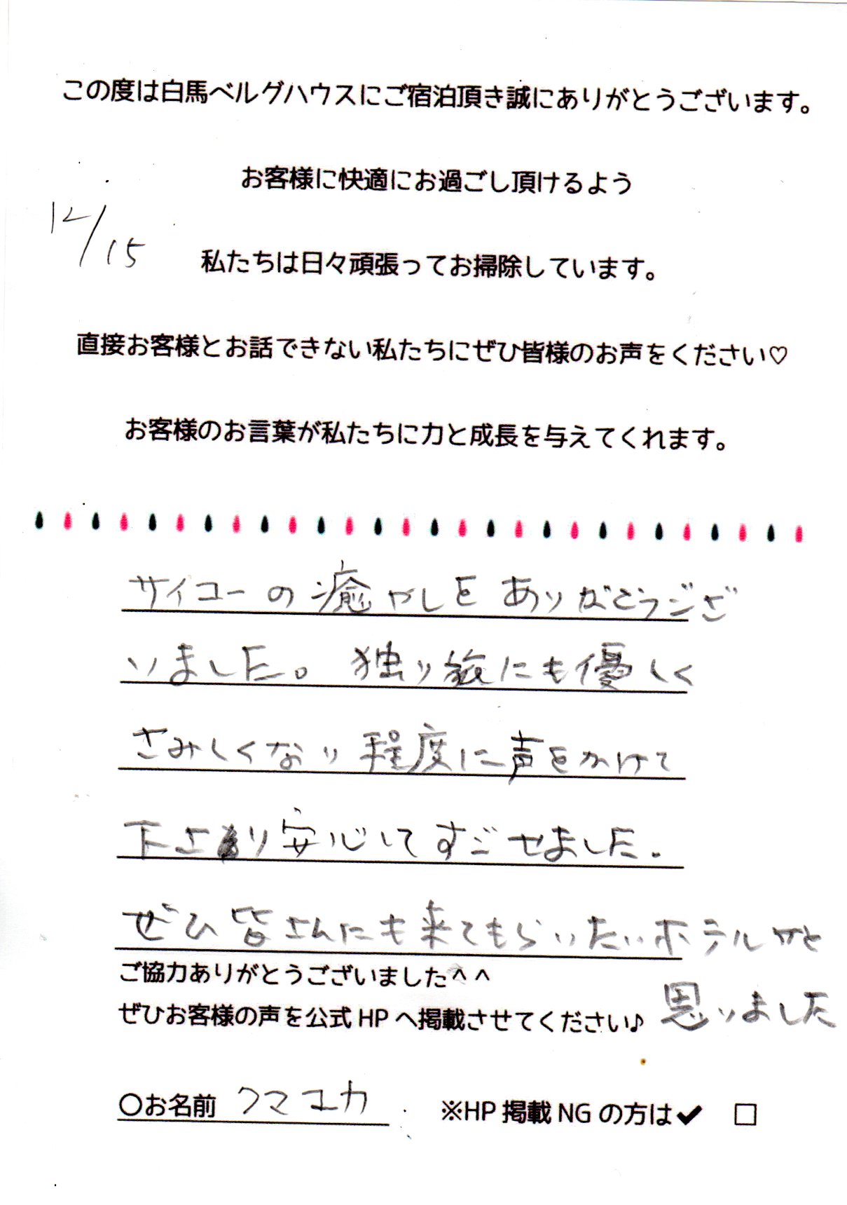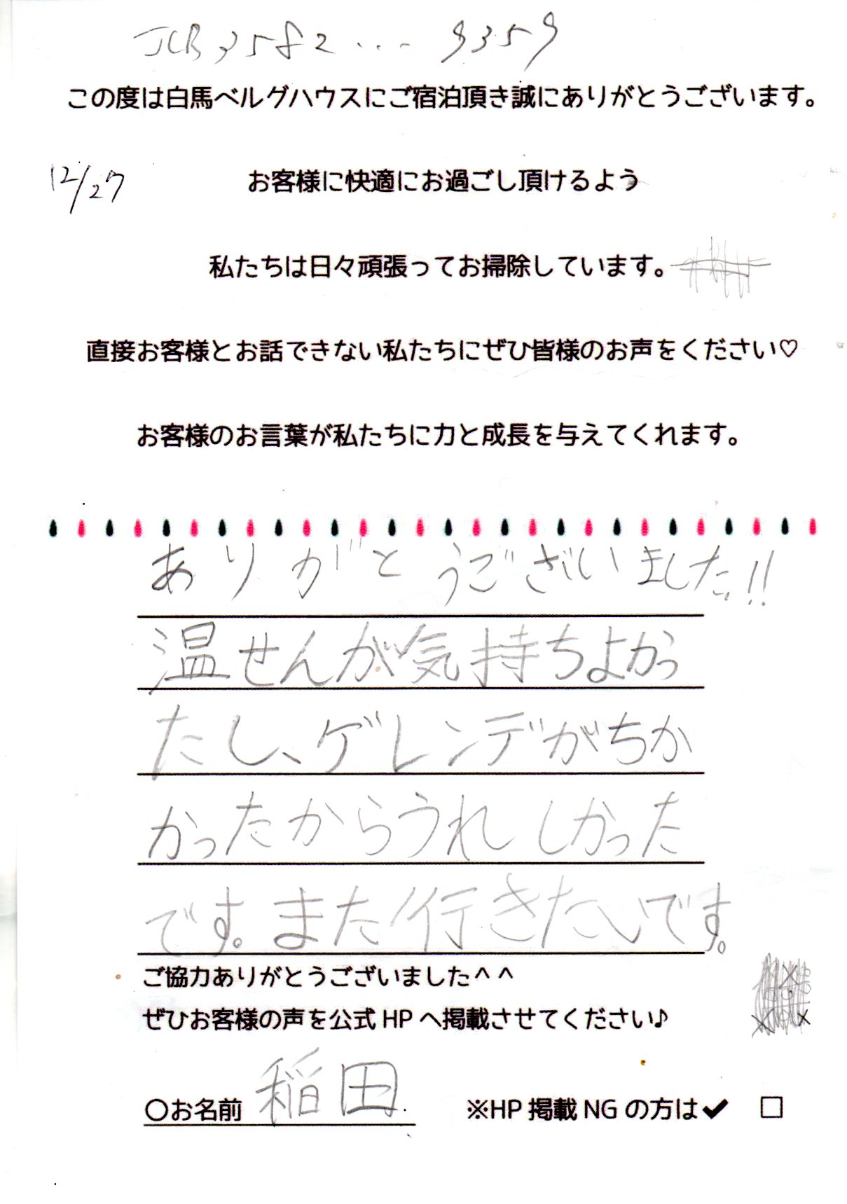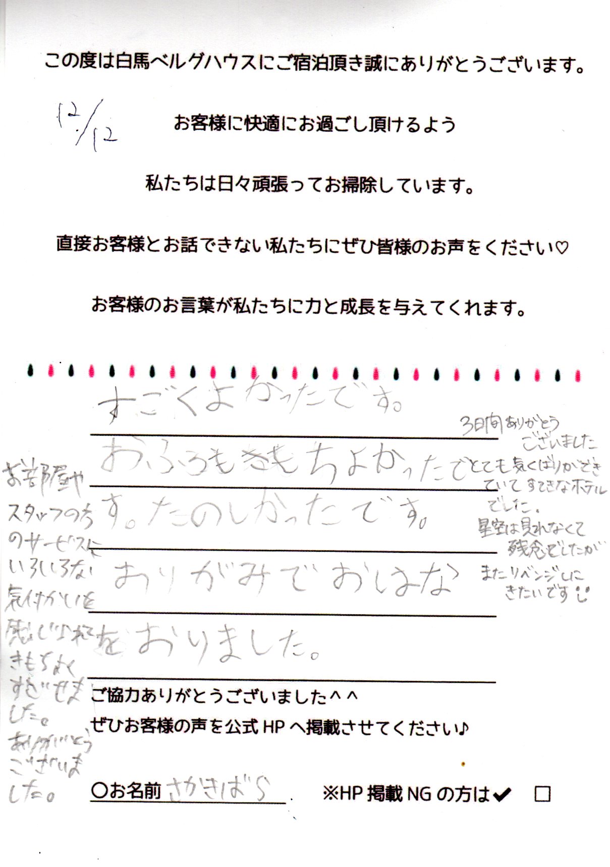 2023年12月 ご宿泊