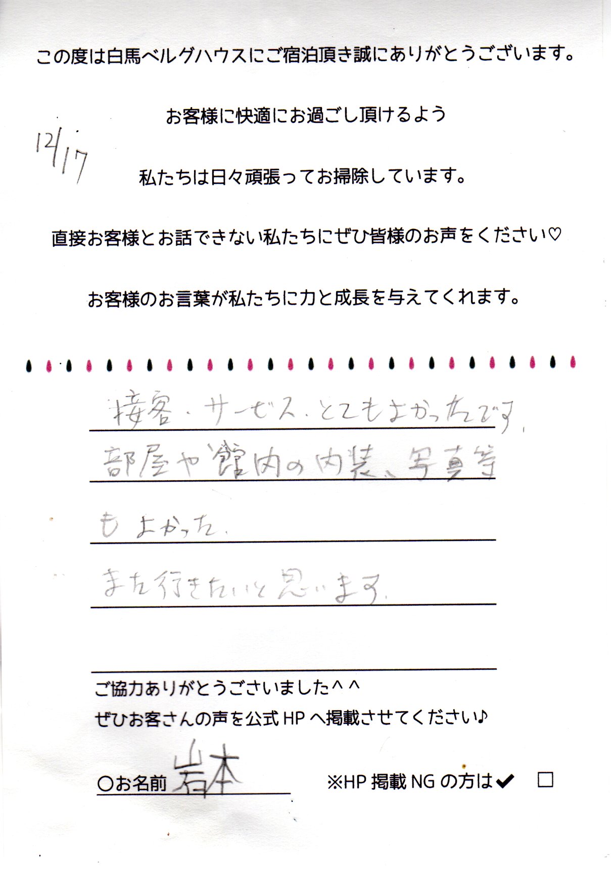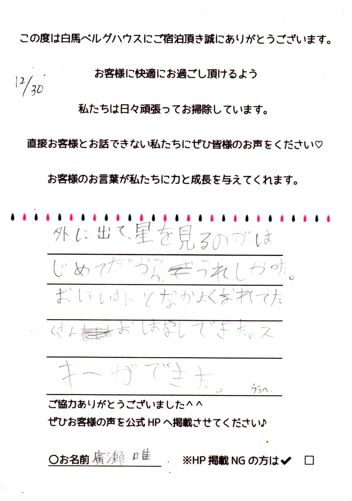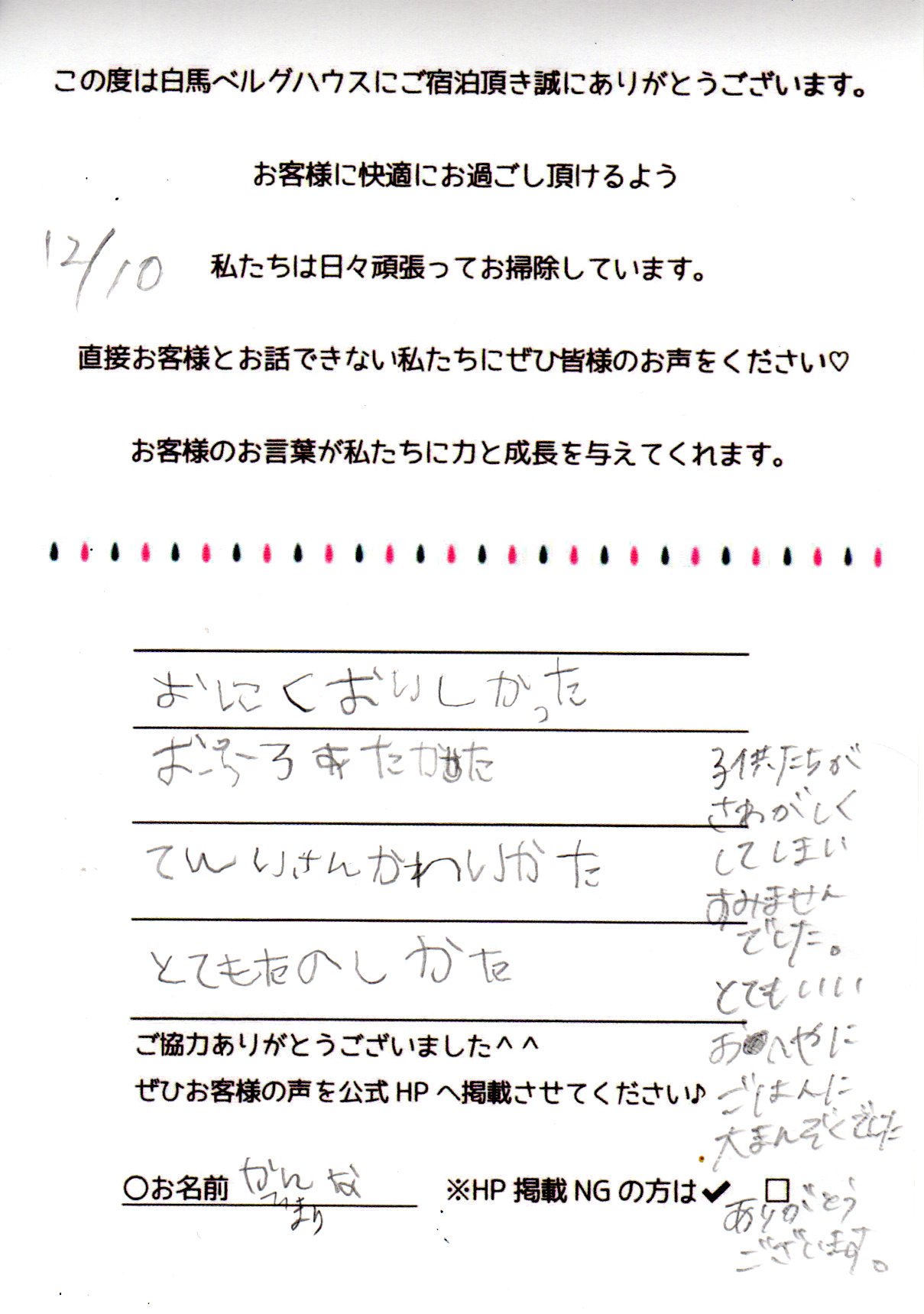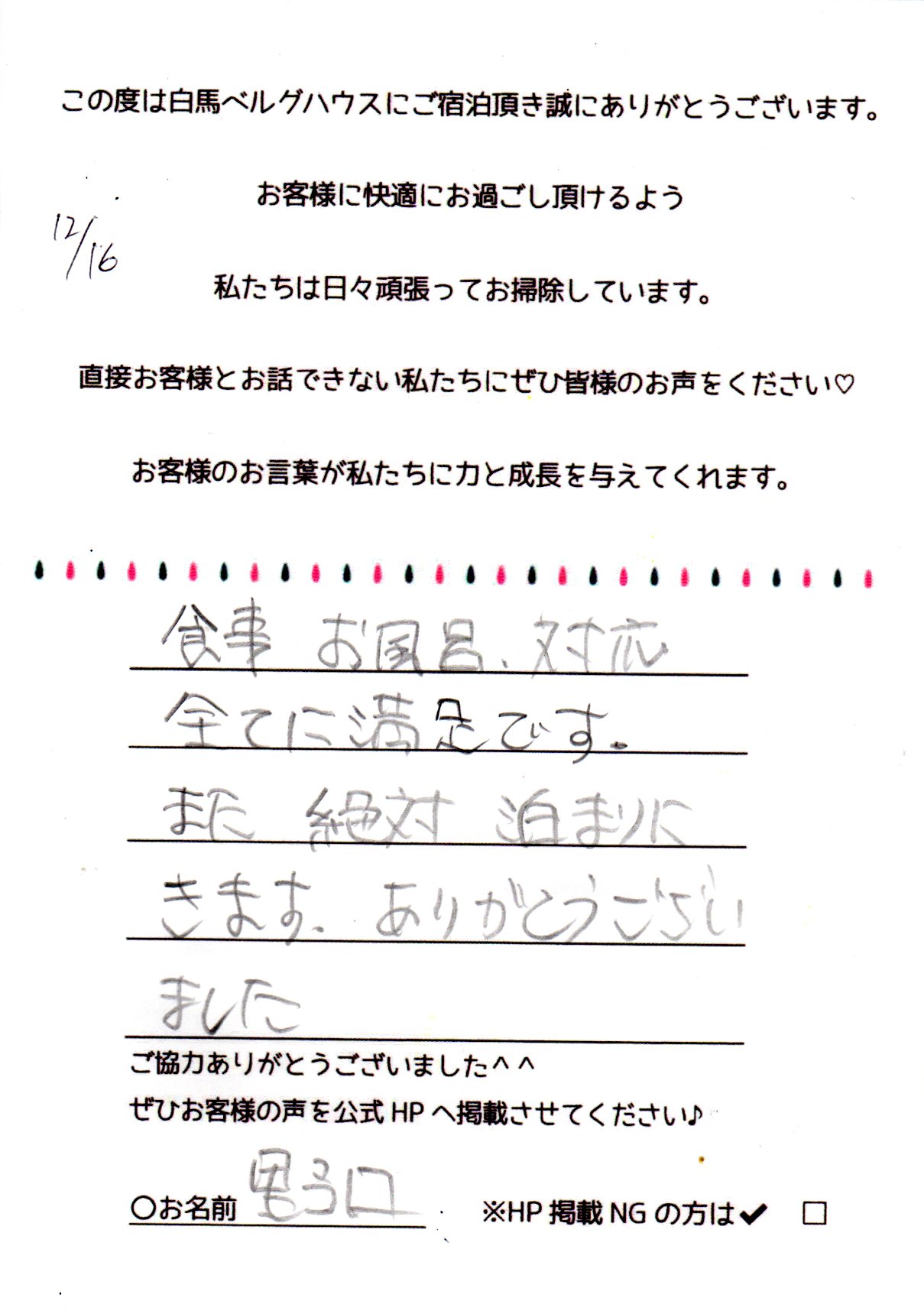2023年12月 ご宿泊