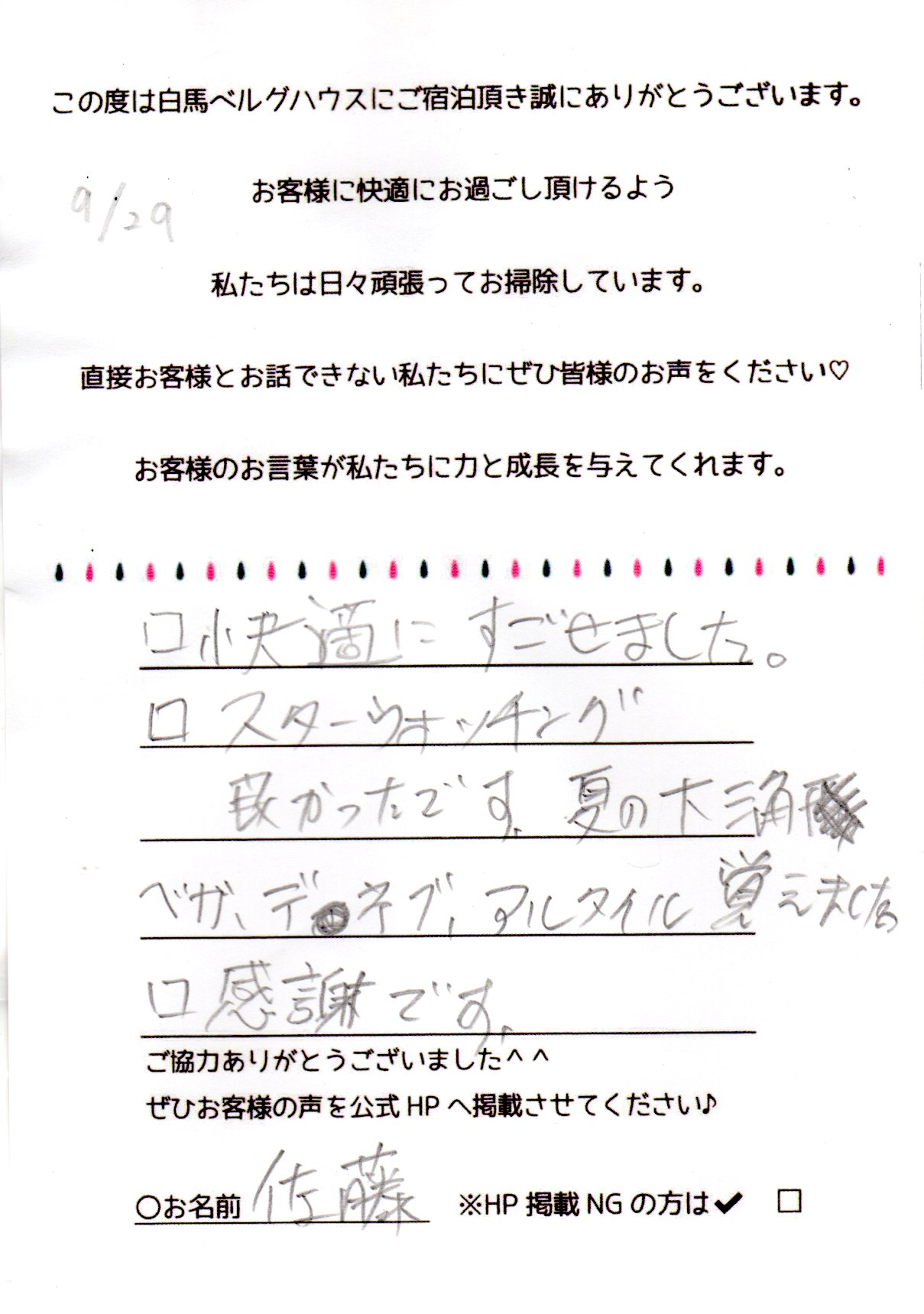2023年9月 ご宿泊
