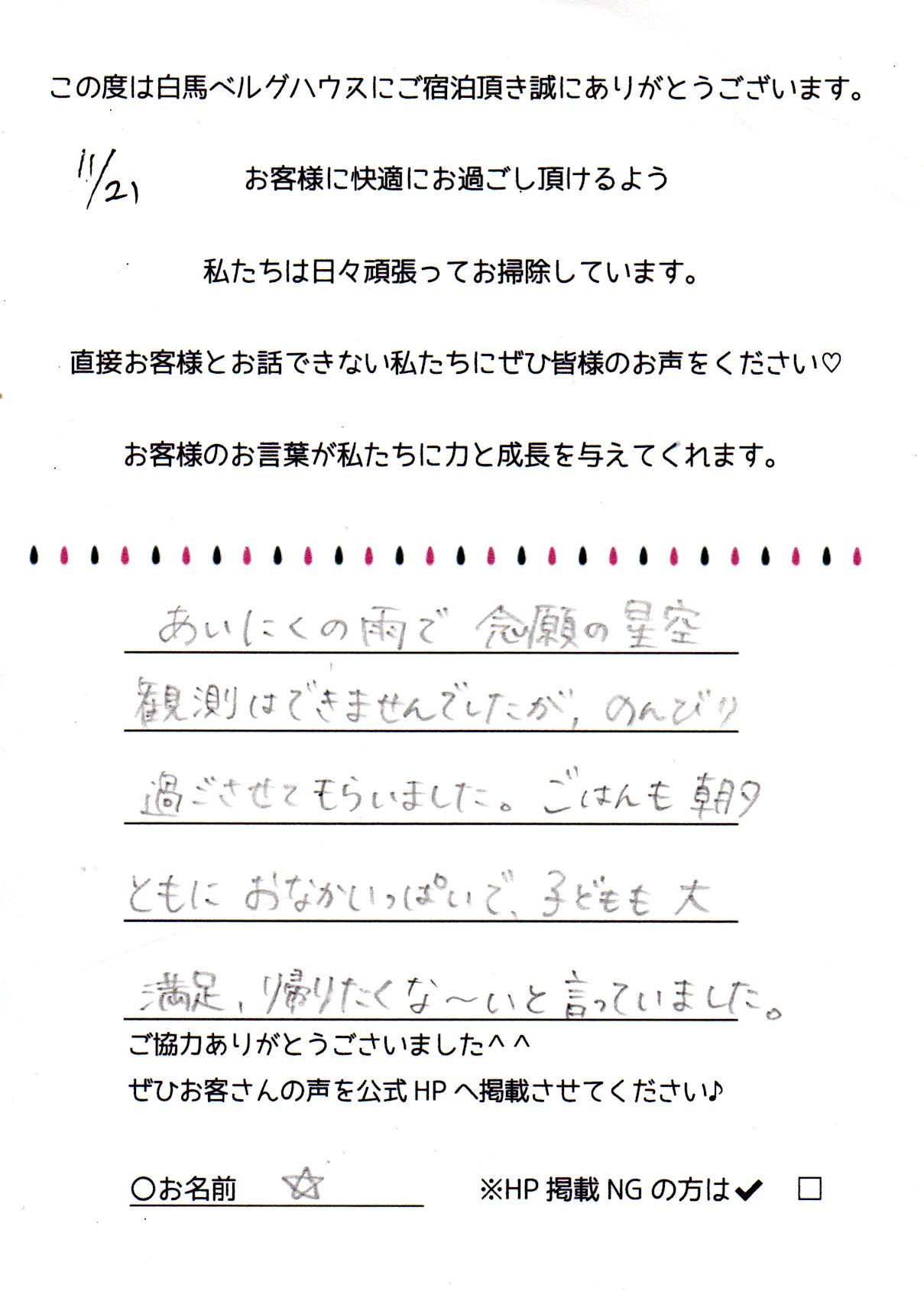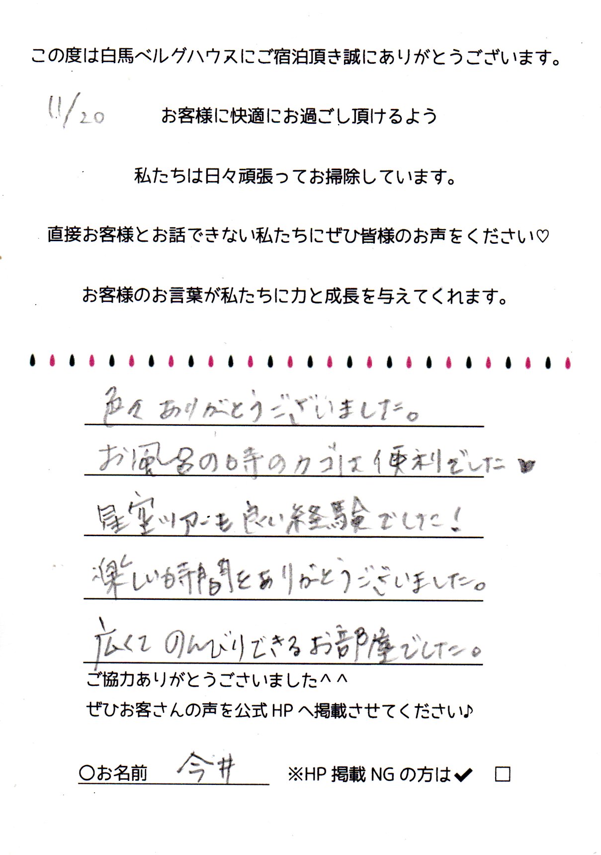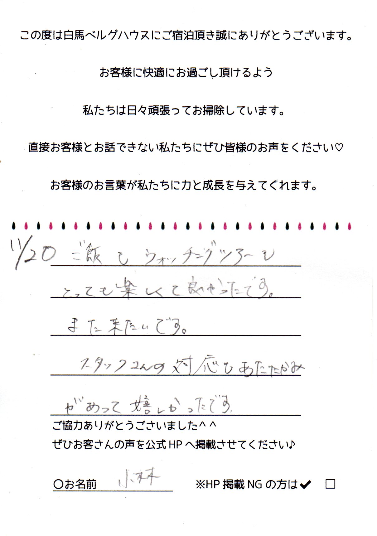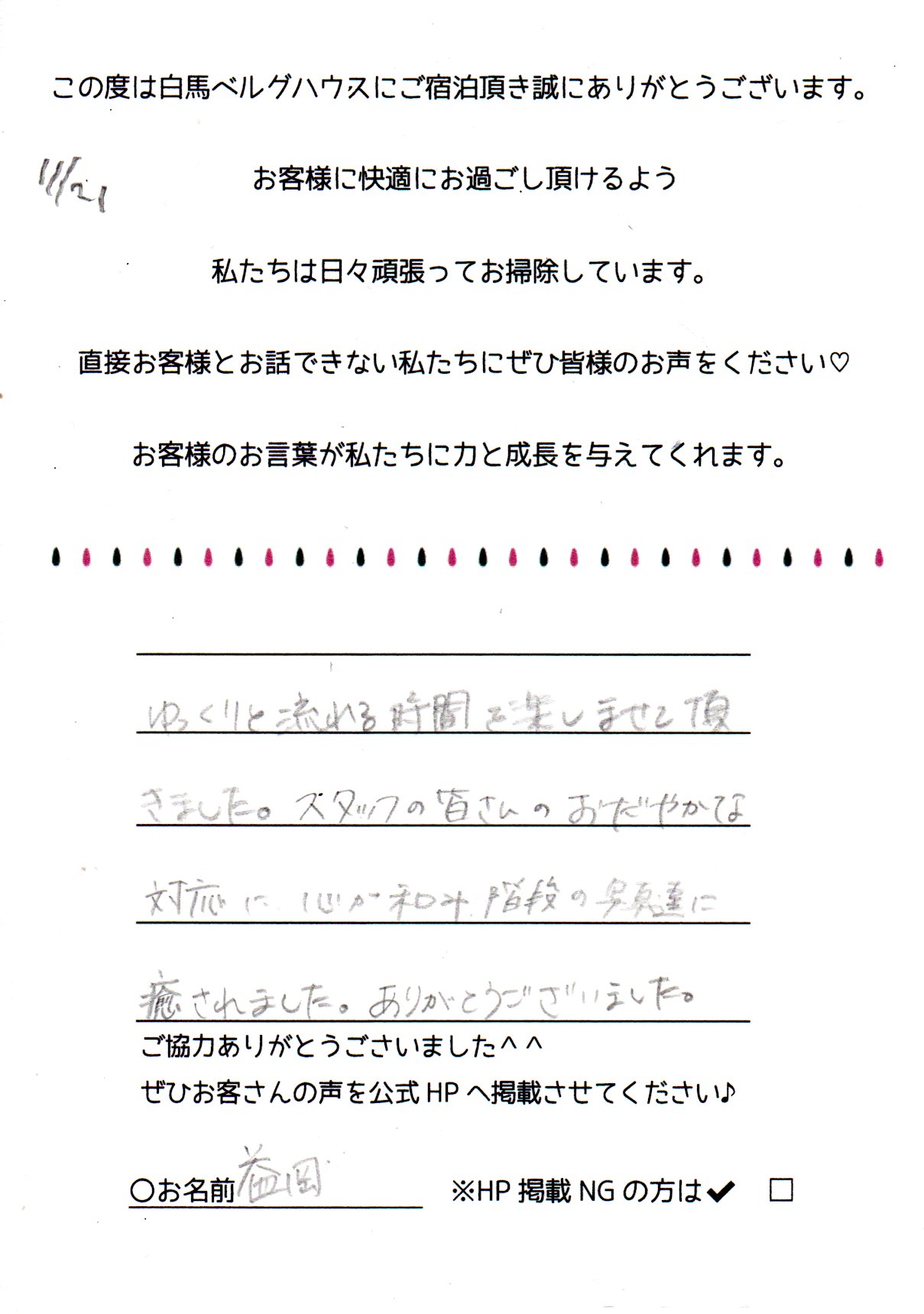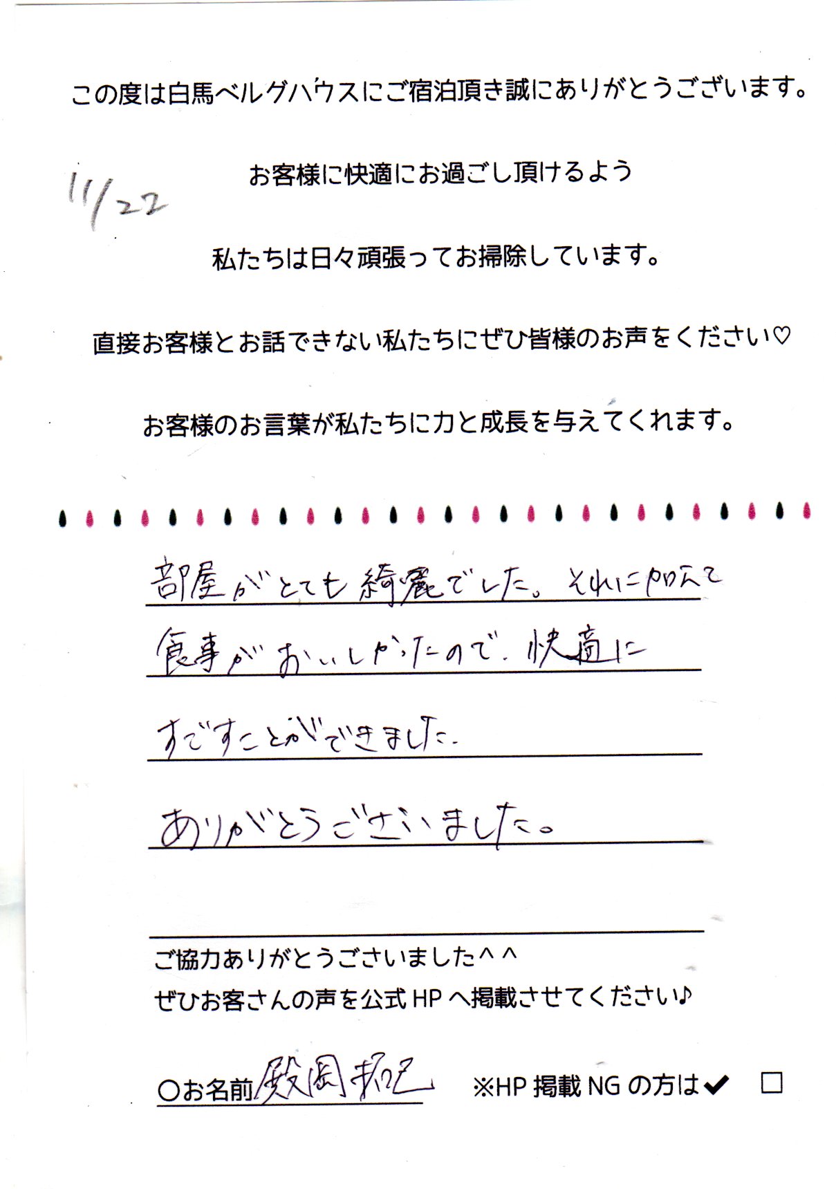 2022年11月 ご宿泊