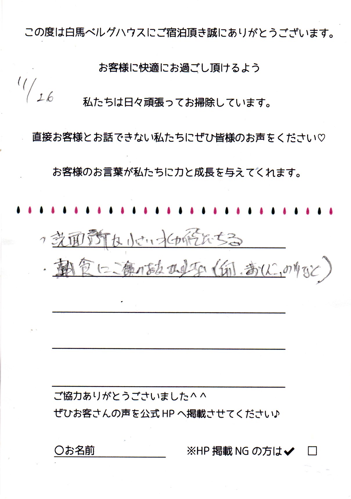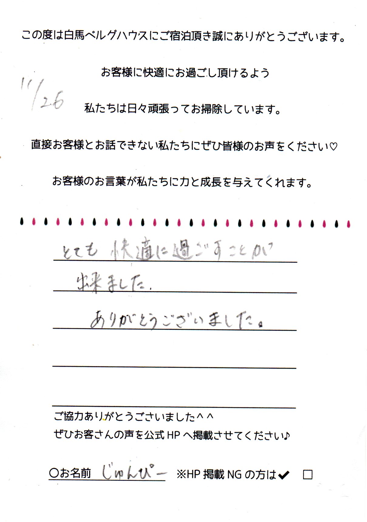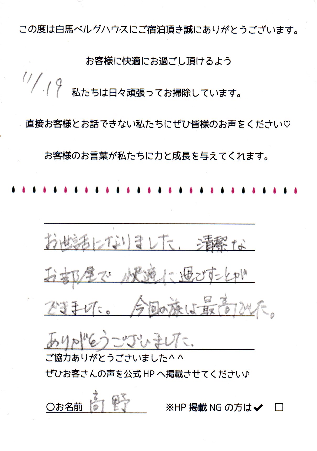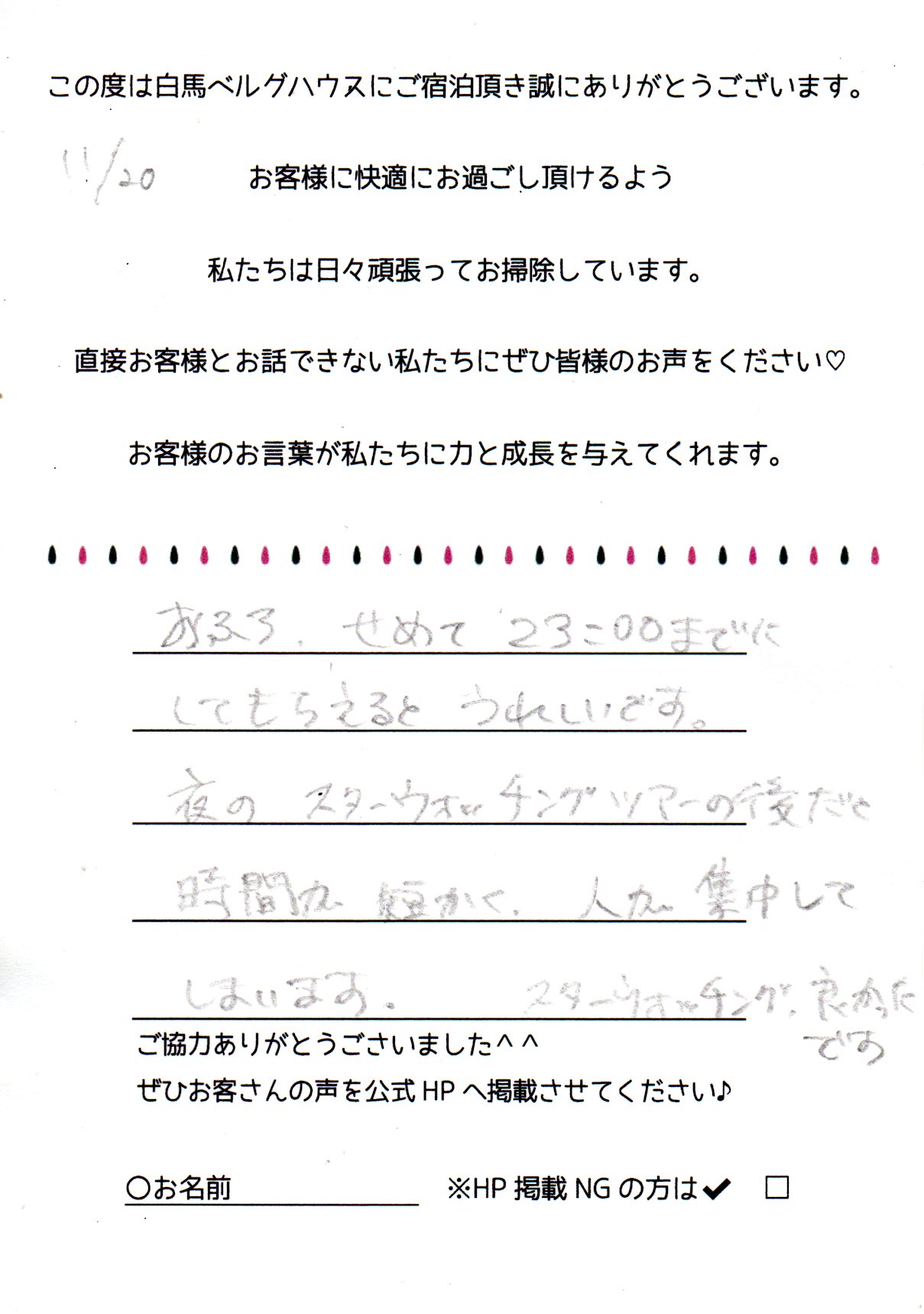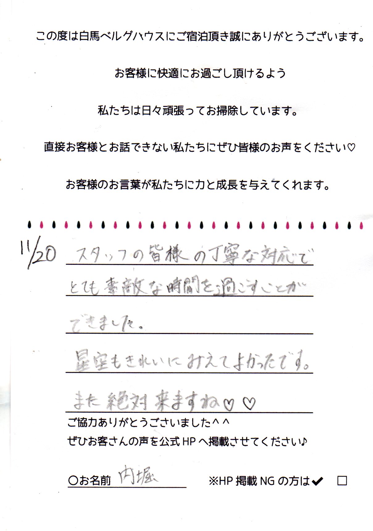 2022年11月 ご宿泊