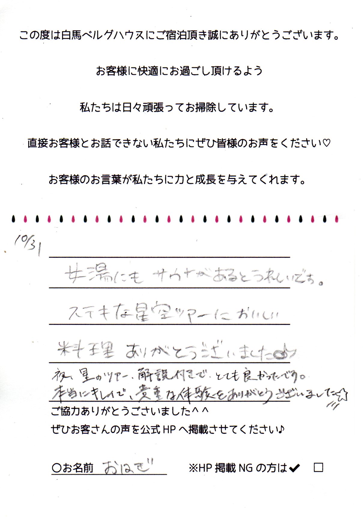 2022年10月 ご宿泊