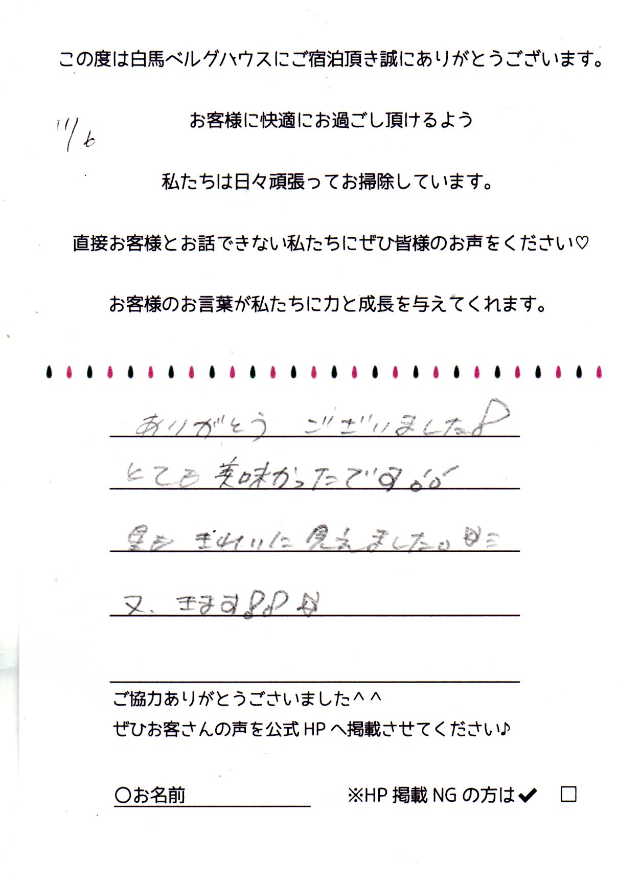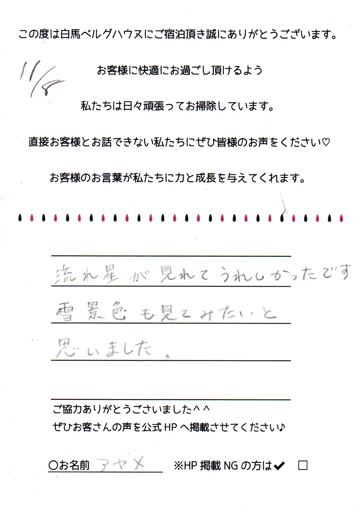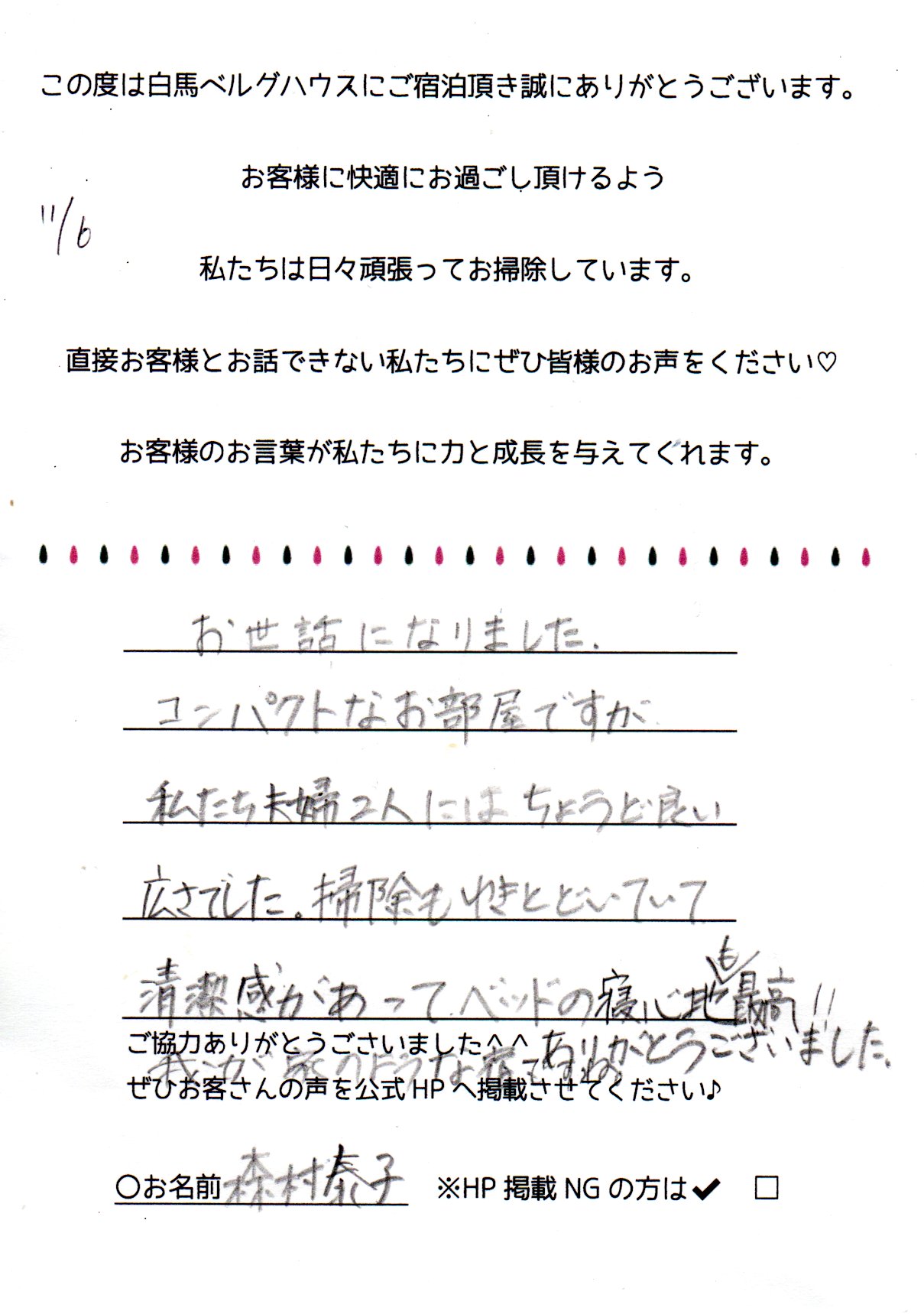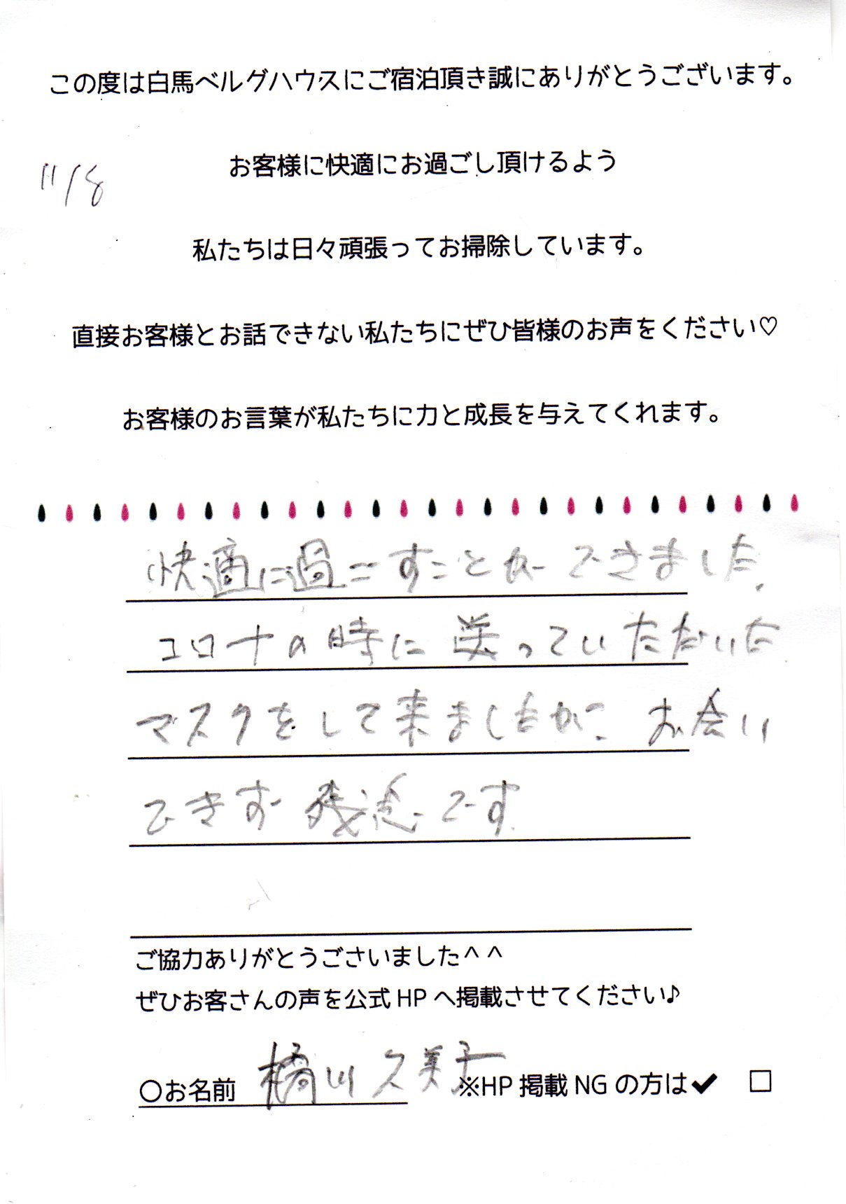 2022年11月 ご宿泊